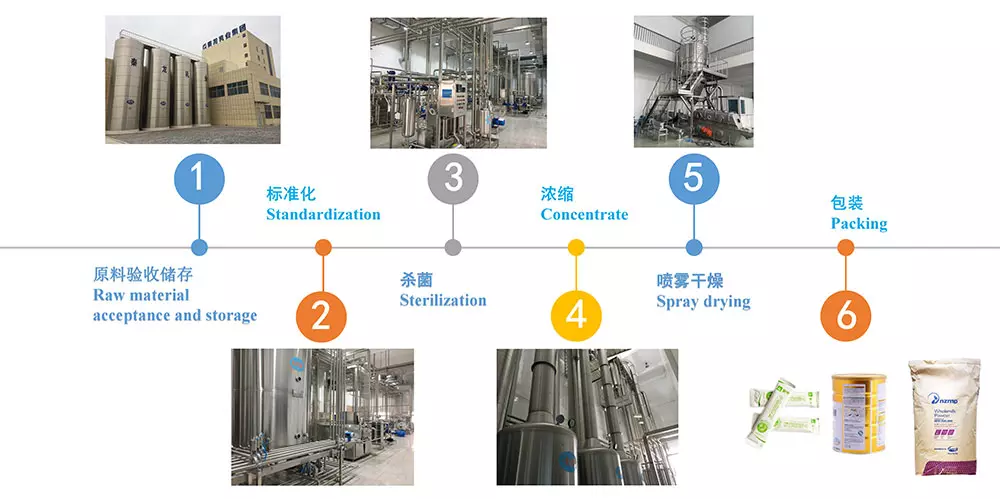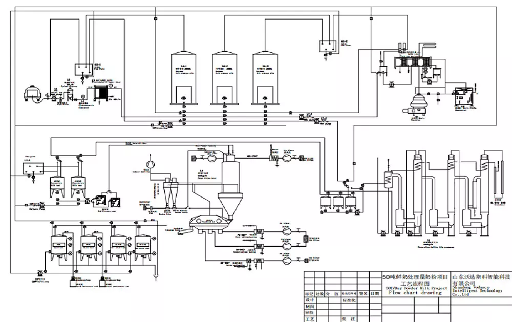 奶粉加工生產(chǎn)線是將液態(tài)奶轉(zhuǎn)化為優(yōu)質(zhì)奶粉的設(shè)備。整個(gè)生產(chǎn)過程都受到嚴(yán)格控制,以確保產(chǎn)品風(fēng)味和營養(yǎng)成分的保存。通過直接標(biāo)準(zhǔn)化系統(tǒng)調(diào)節(jié)牛奶的脂肪含量,并使用降膜蒸發(fā)器將牛奶濃縮至35-55%的干物質(zhì)含量。然后,通過壓力噴霧干燥機(jī)去除奶粉中多余的水分并冷卻,以確保奶粉的粒徑均勻,溶解度好,潤濕性強(qiáng)。